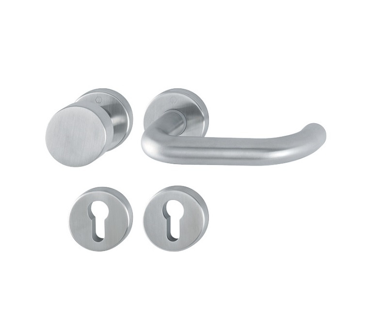 - Fixation: vis universelles invisibles, traversantes, bilatérales; rosaces bouton / poignée à l'intérieur, rosaces clés mutuelles