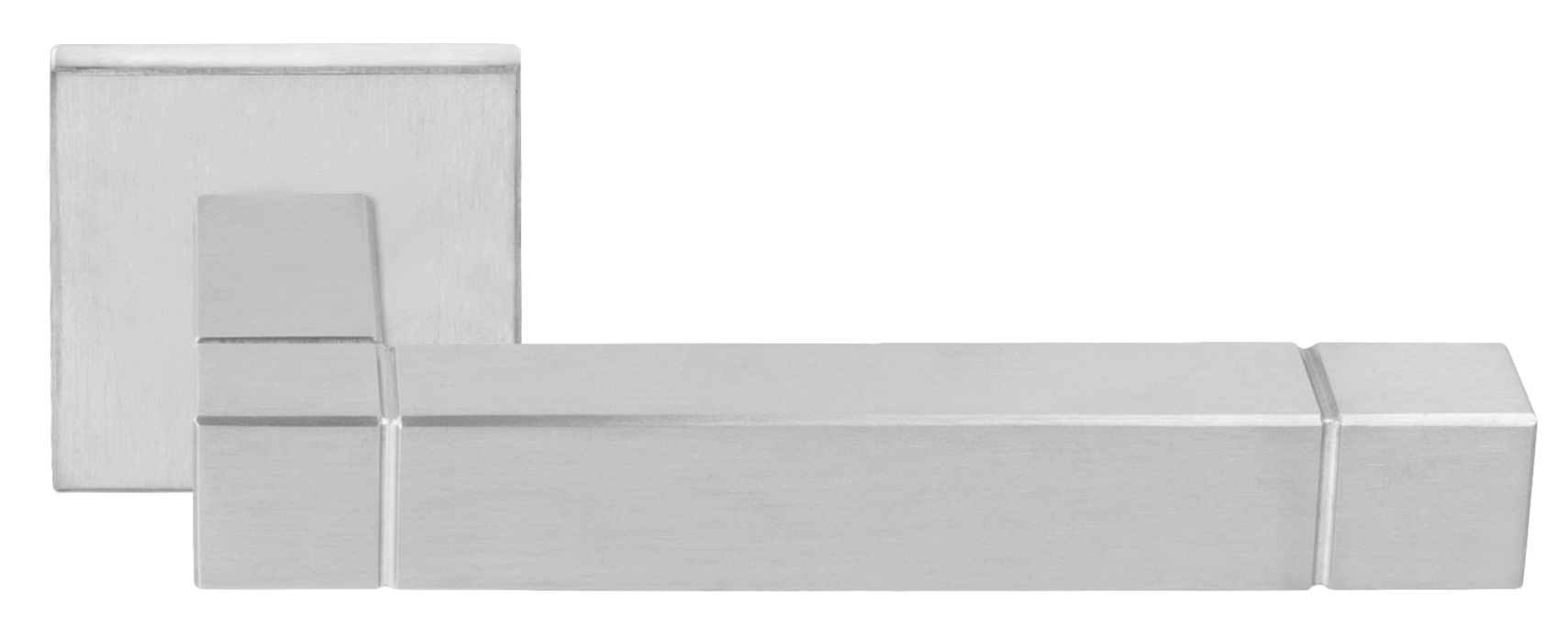 Ces poignées de porte en inox sont équipées de rosaces carrées à ressort. Les poignées de porte sont également disponibles dans une version différente.
