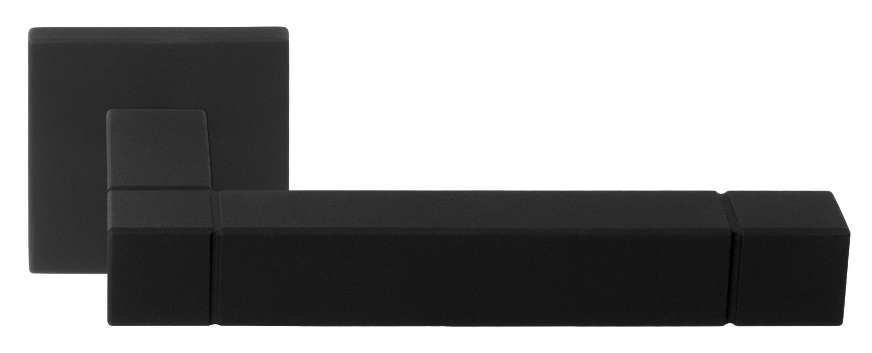 Ces poignées de porte noires sont équipées de rosaces carrées à ressort. Les poignées de porte sont également disponibles dans une version différente.