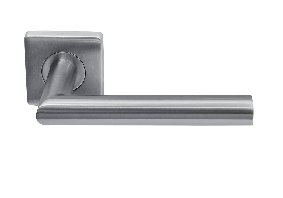 Poignées de porte en acier inoxydable sur rosace carrée avec un angle de 90°