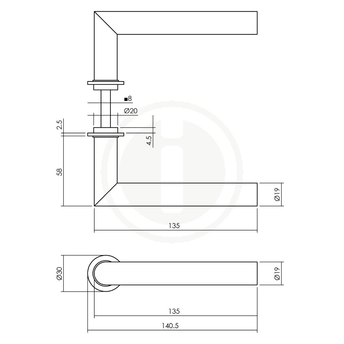 La rosette ronde a un diamètre de 30 mm et une épaisseur de seulement 2,5 mm. Comme la rosace est munie d'une fixation autocollante, aucun matériel de fixation n'est nécessaire. Les poignées de porte sont fixées à la goupille au moyen des vis Allen fournies.