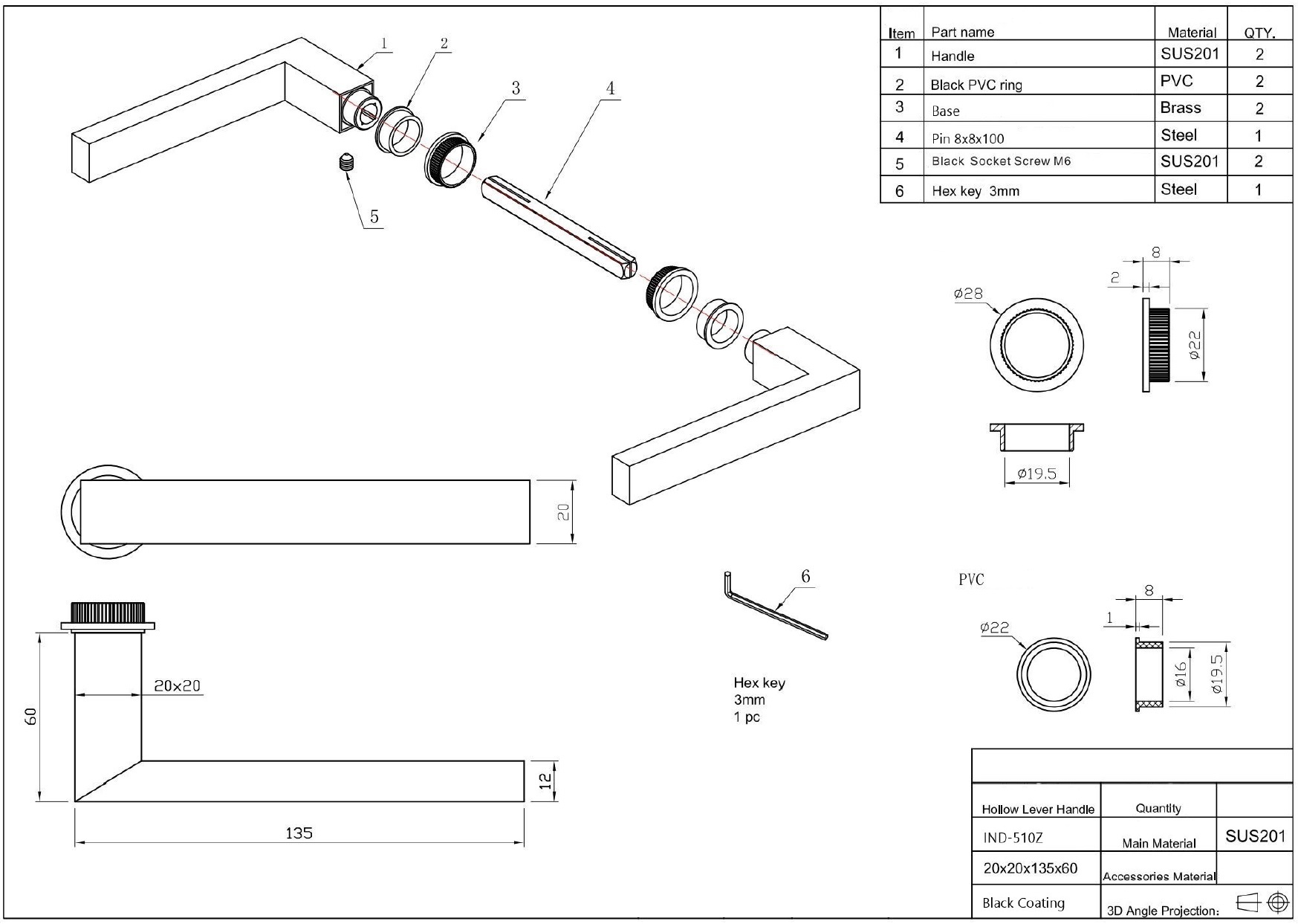 Ces poignées de porte minimalistes noires conviennent aux portes intérieures d'une épaisseur de porte de 38 à 44 mm.