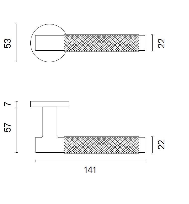 Les poignées de porte en zamak massif présentent également un motif à découpes croisées. Elles bénéficient d'un revêtement anodisé titane.