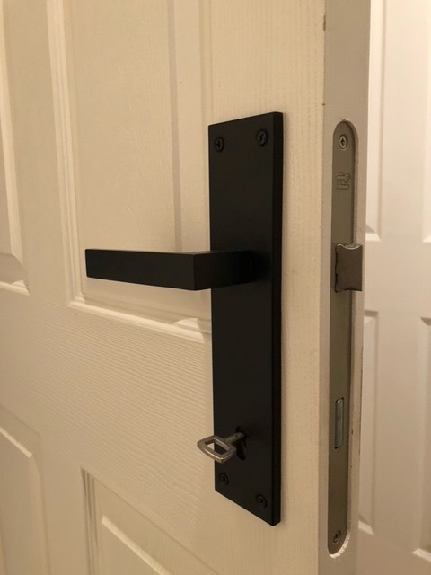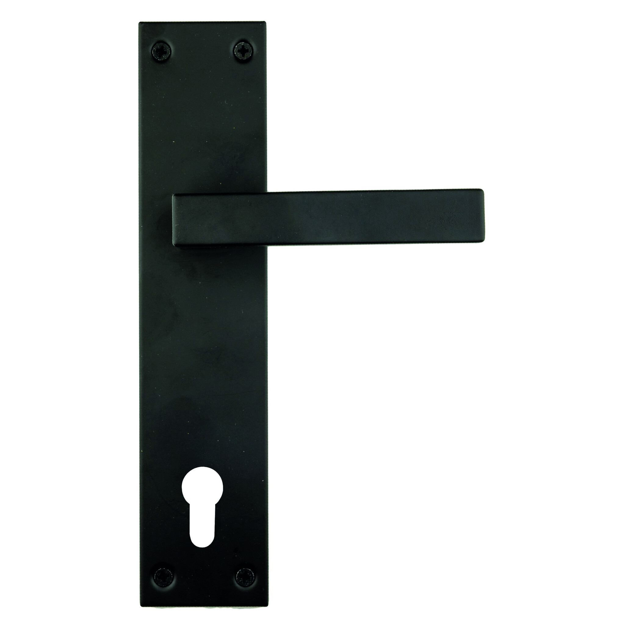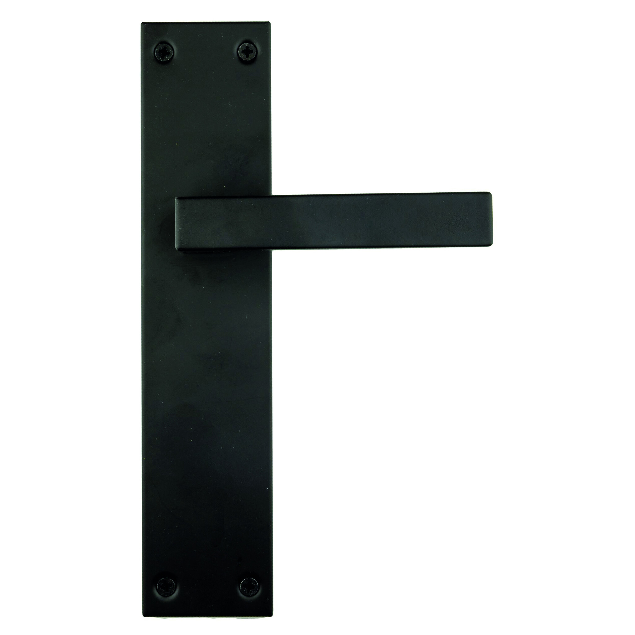 Poignée de porte noire COSMIC sur plaque de rénovation avec peinture noire pour usage intérieur
