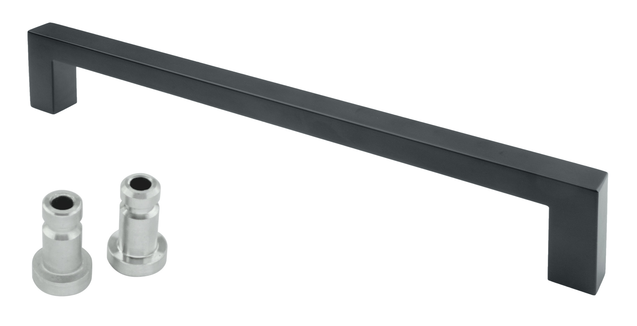 Cette poignée de porte noire mate a une longueur totale de 320 mm et est équipée d'un montage aveugle.