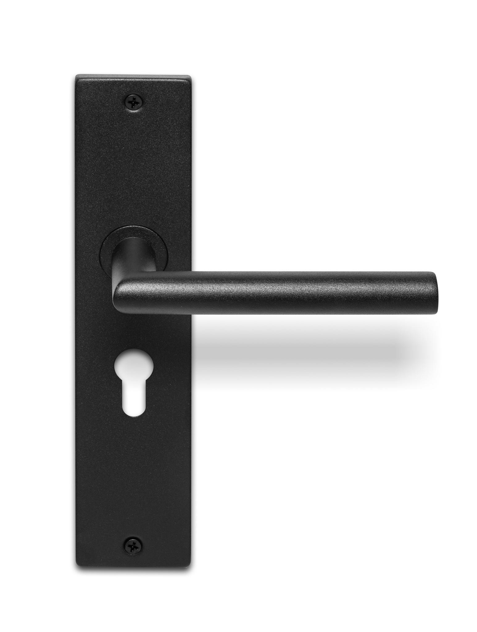 Ces poignées de porte 'Jersey' noires sont fournies avec une plaque longue 245x53x9 mm (lxlxp). Ils sont fabriqués en acier inoxydable et sont ensuite pourvus d'un revêtement en poudre noir structuré. Cela crée un joli look industriel.