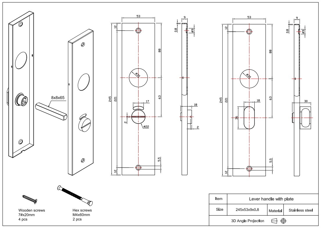 Tous les modèles sont fournis sous forme d'ensemble complet (paire de poignées de porte avec protections) y compris le matériel de montage.