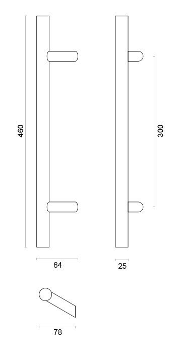 Poignée de porte coudée en acier inoxydable et finie avec un revêtement structuré noir mat (RAL9005) résistant aux UV, ce qui rend ces poignées de porte très adaptées aux portes extérieures.