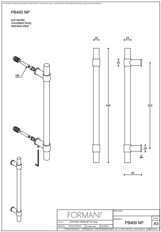 Ces poignées de porte sont disponibles en 3 variantes : avec montage continu, avec montage aveugle et par paire avec montage par paire. Faites votre choix dans le menu déroulant en haut à droite.