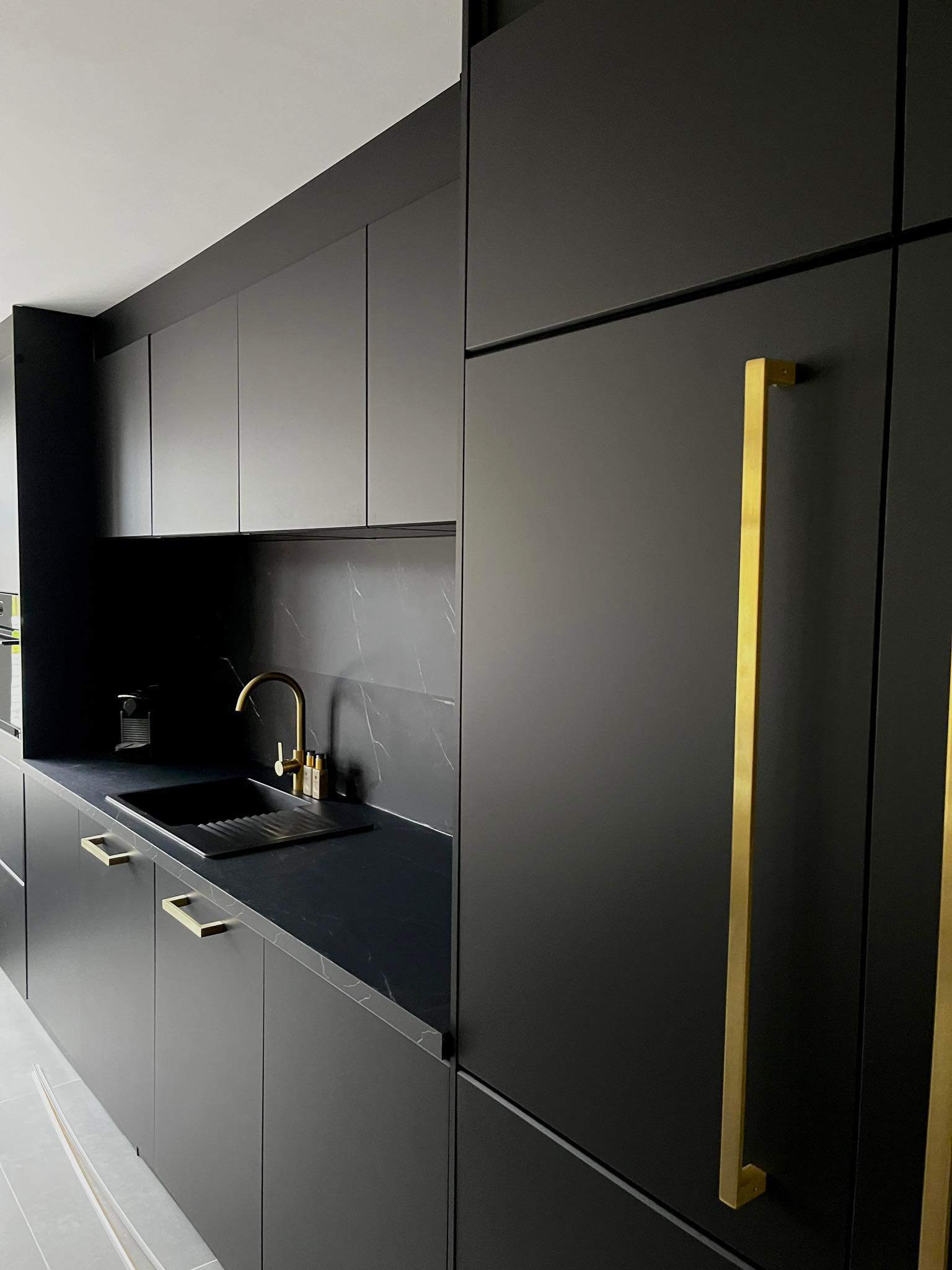 Poignée de porte longue et moderne en or mat avec un axe de 1000 mm pour un montage encastré