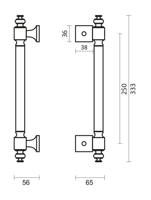 Le diamètre de la poignée est de 19 mm et la taille de la tige de l'accessoire est de 200 mm. La longueur totale de cette poignée de porte "Old Silver" est de 258 mm.