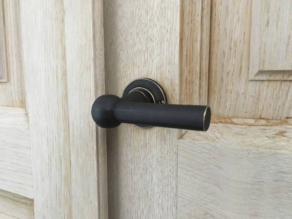 Cet ensemble donne aux poignées de porte un aspect plus ancien mais très particulier.