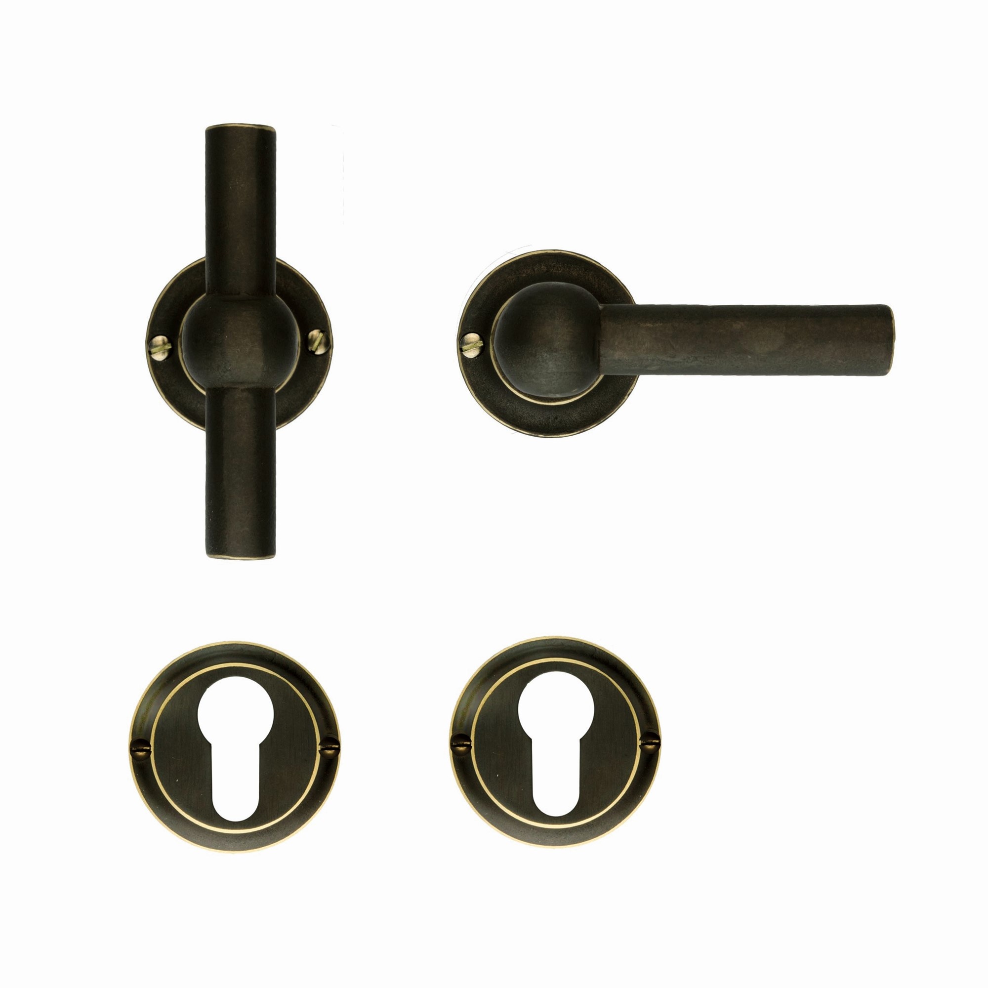 Poignée de porte Petra en combinaison T+L en laiton vieilli disponible en 4 variantes