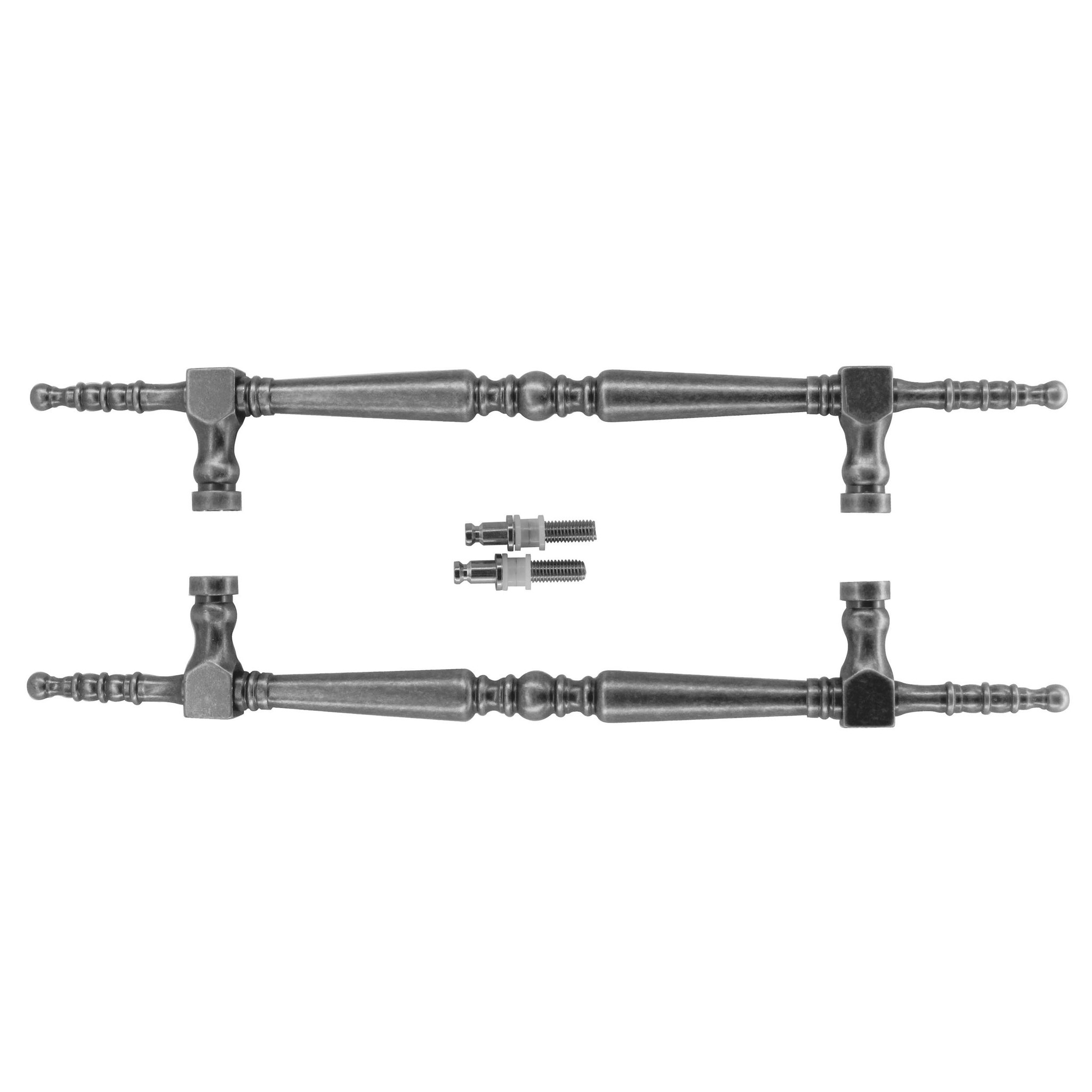 Poignées de porte solides au caractère classique en Vieil Argent. La poignée de porte pleine a une longueur totale de 418 mm et la mesure centre à centre est de 260 mm.