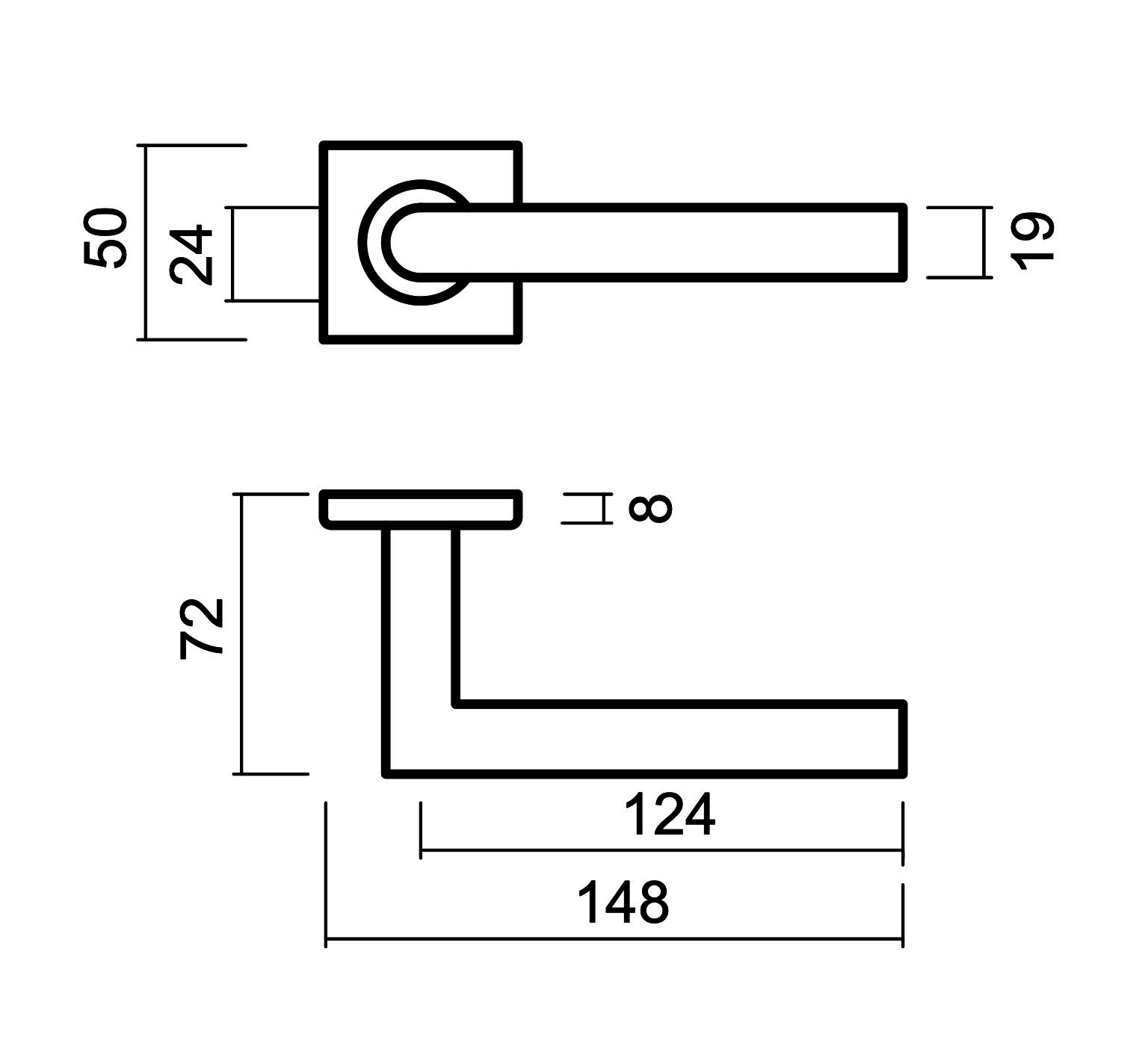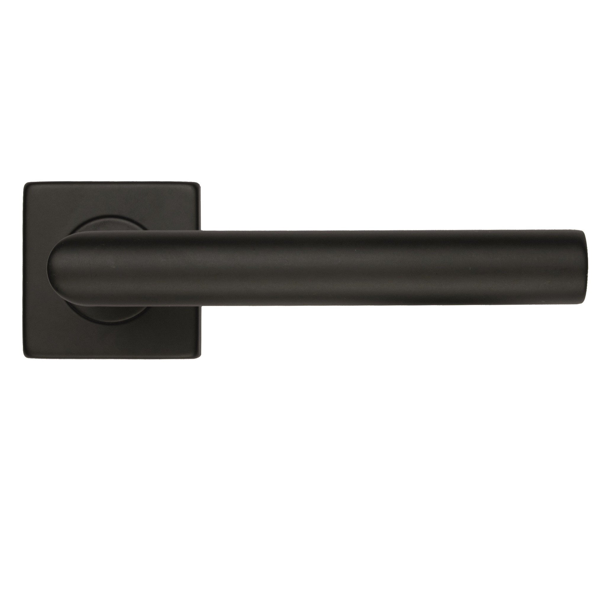 Les poignées de porte noires sont sur rosaces carrées. Ils sont fabriqués en acier inoxydable et recouverts d'un revêtement en poudre noir (Ral 9005).
