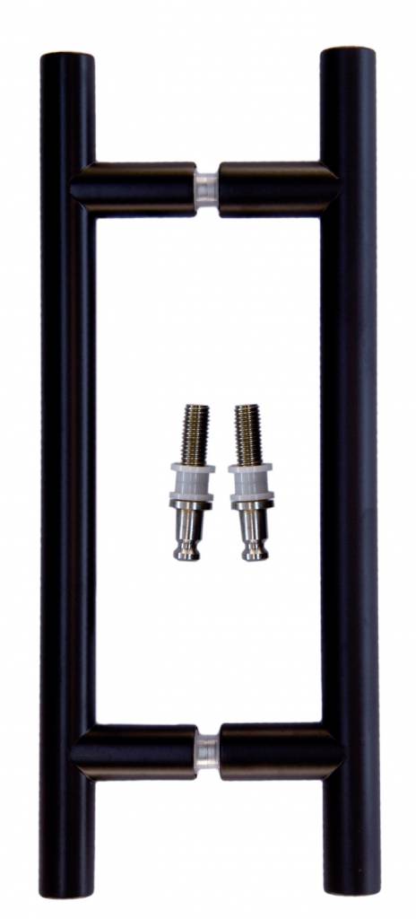 Belles poignées de porte noires en forme de T avec un axe de 200 mm et une longueur totale de 300 mm pour portes en verre