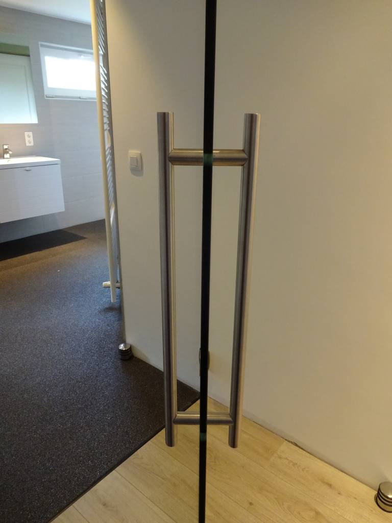Poignées de porte standard en acier inoxydable pour portes en verre d'une longueur totale de 500 mm.