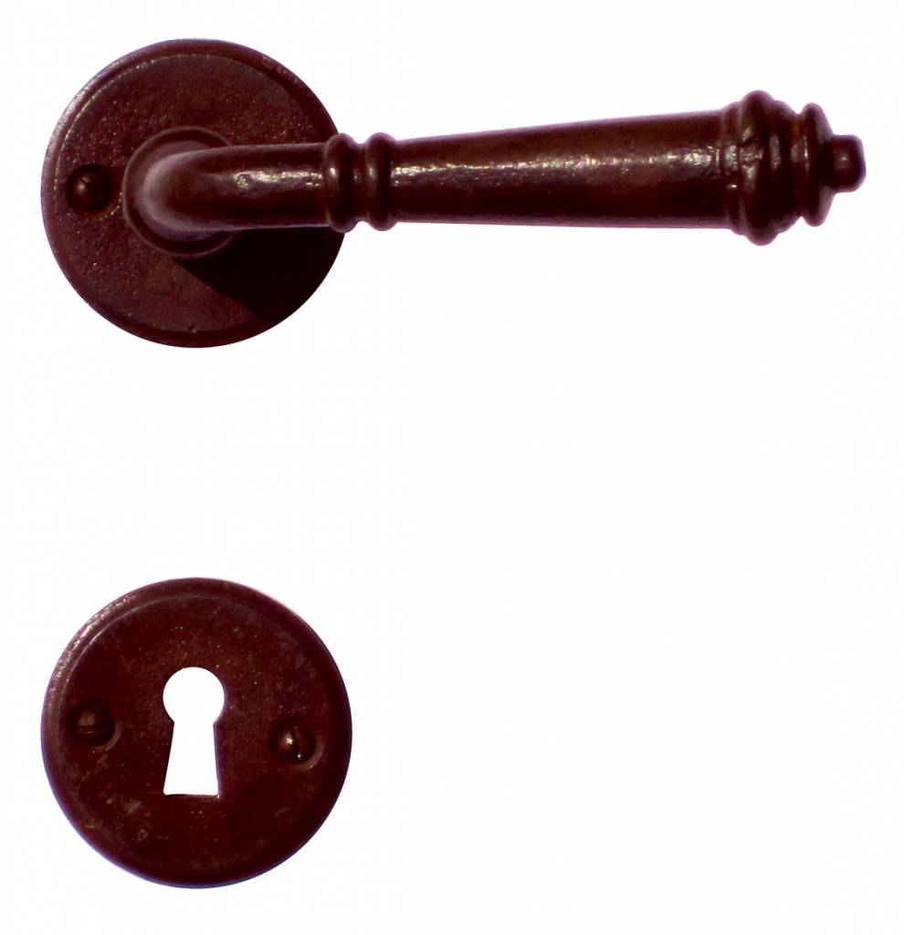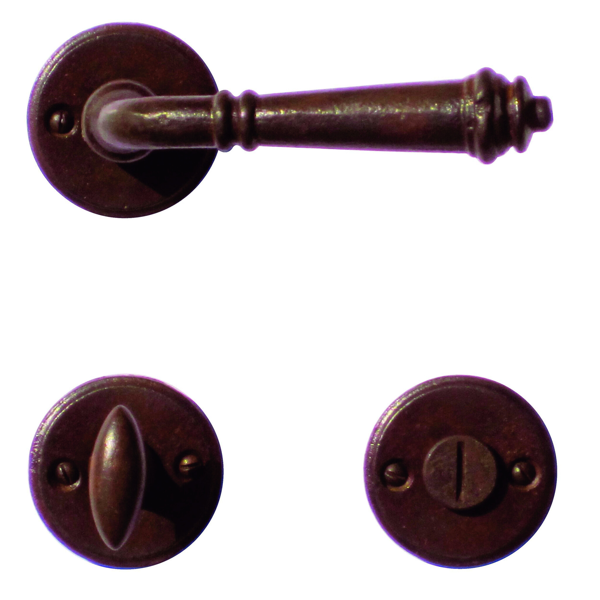 Poignées de porte Tarascon couleur rouille sur rosaces rondes disponibles en 4 variantes
