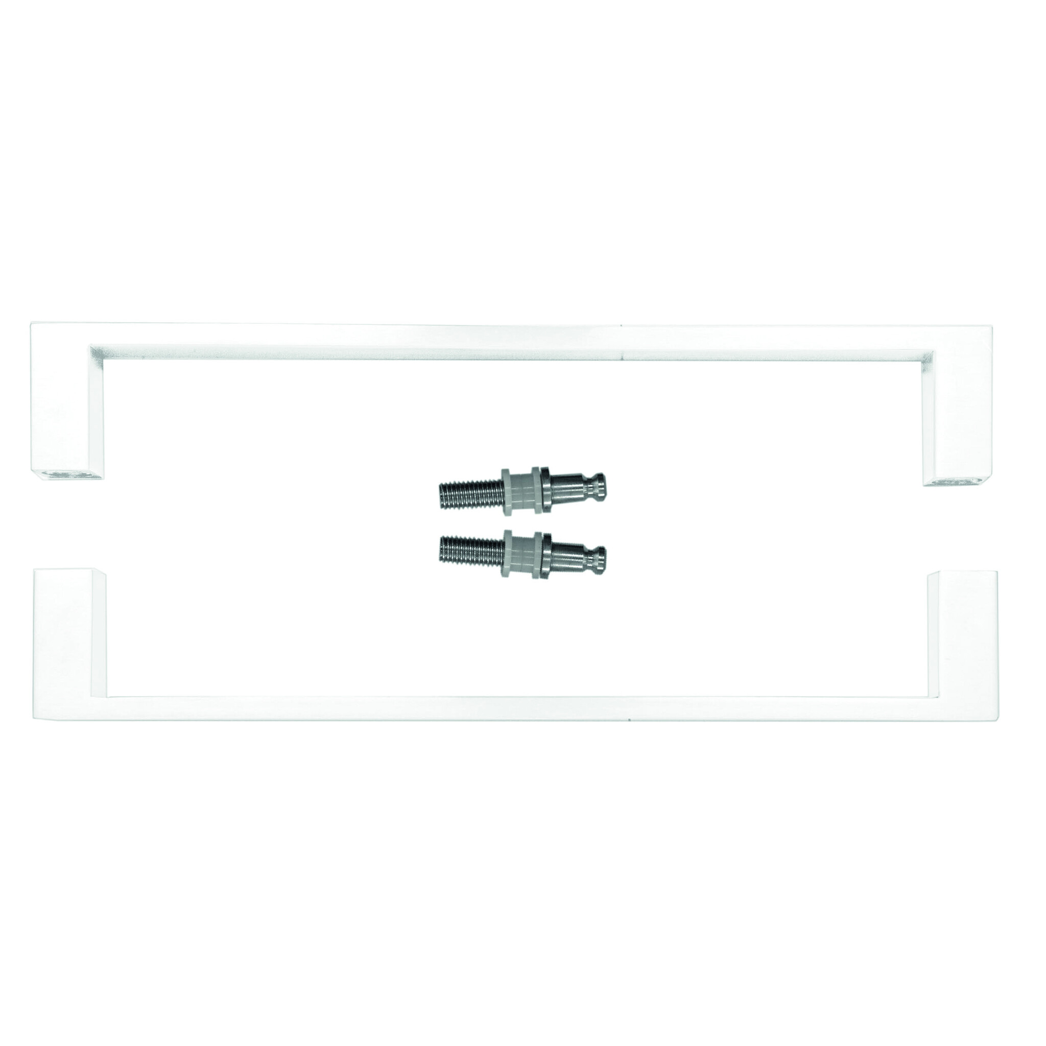 Paire de poignées de porte modernes en version structurée blanche avec une dimension d'axe de 300 mm pour portes en verre.