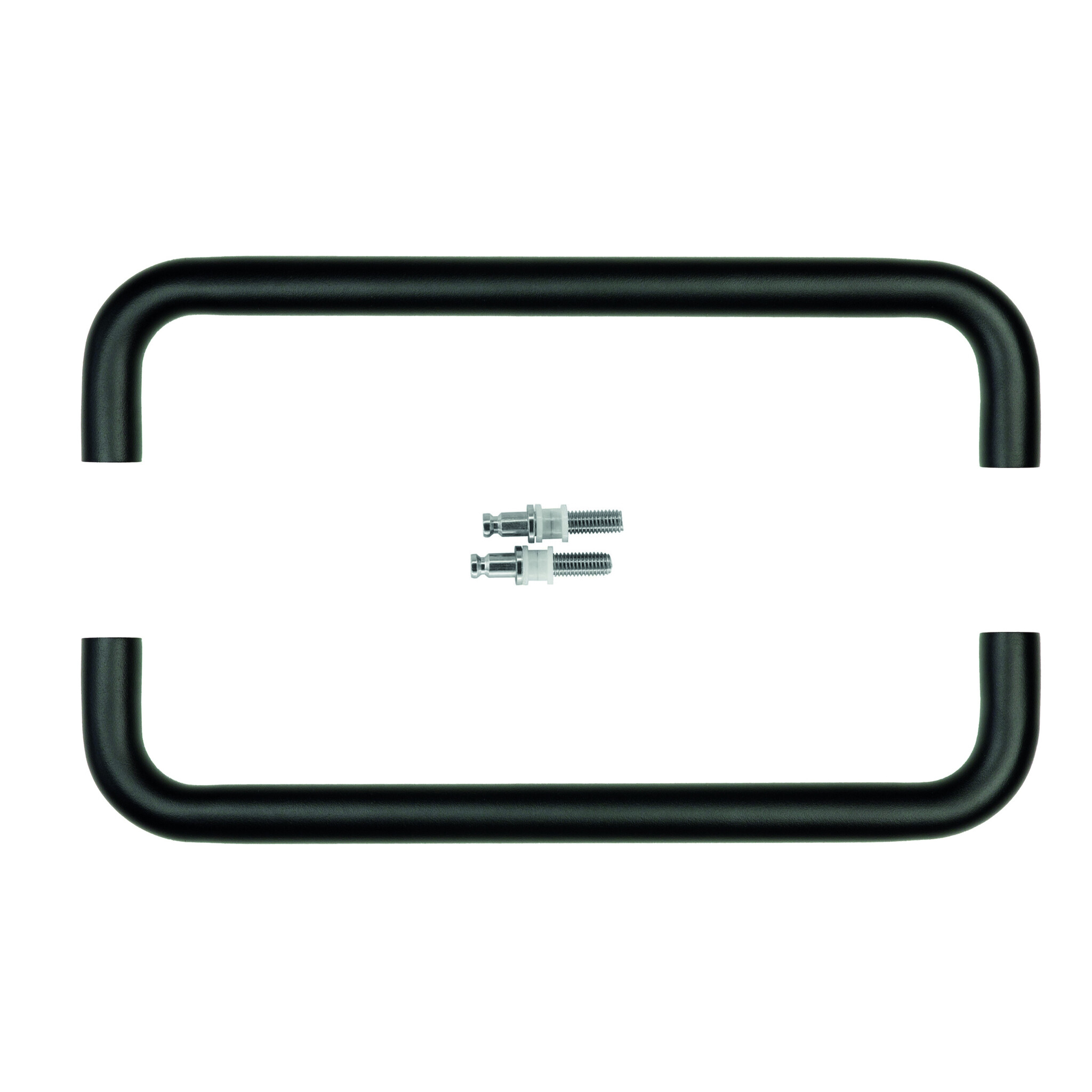 Poignées de porte modernes en forme de U noires avec de beaux coins arrondis. La base est en acier inoxydable et elles sont disponibles en noir mat pour les portes en verre. Pour une utilisation en intérieur uniquement