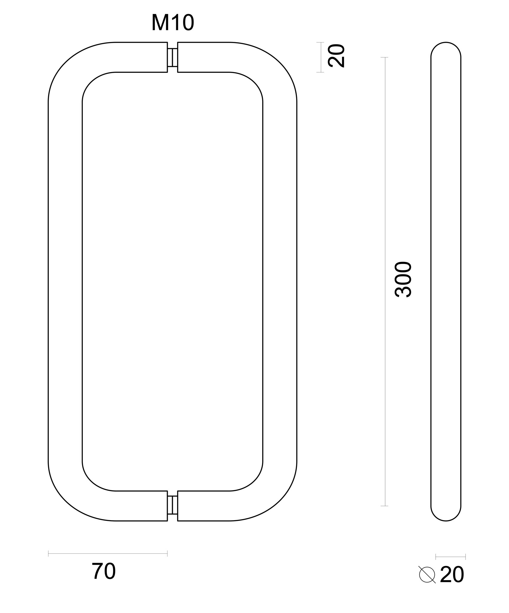 La poignée de porte ronde modèle U est fournie individuellement avec le matériel de montage nécessaire pour le montage sur des portes en verre.