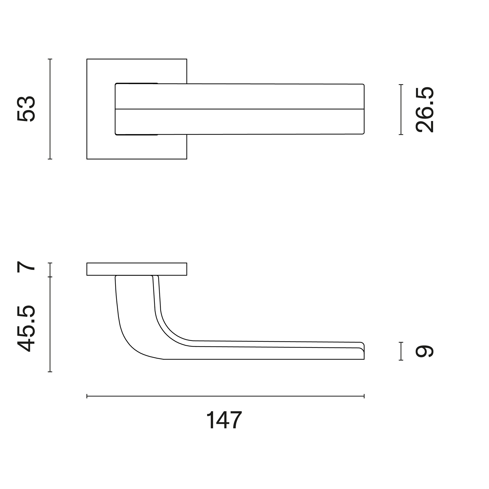 Ces poignées de porte chromées polies sont montées sur des rosaces carrées de 53x53 mm qui ont seulement 7 mm d'épaisseur.