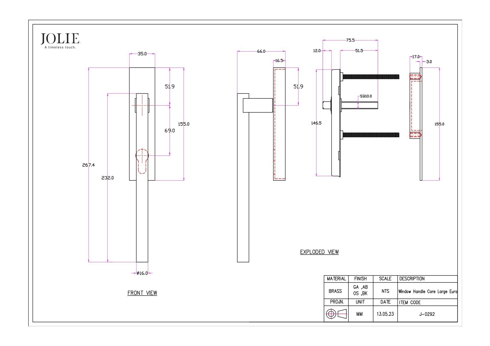 À NOTER : Les ferrures pour fenêtres, meubles et portes JOLIE sont entièrement coulées et finies à la main. Chaque pièce est unique, avec de subtiles variations de taille, de texture et de couleur. Ces variations naturelles témoignent d’un véritable savoir-faire et rendent chaque pièce unique : il n’y en a pas deux identiques.