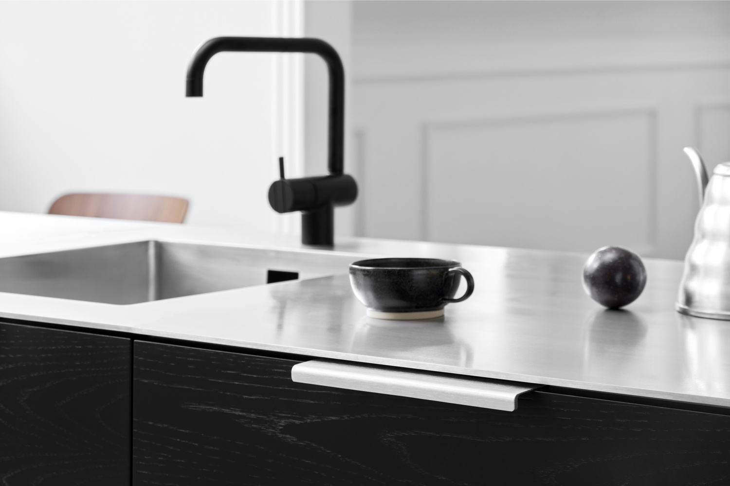 Artisan est une poignée de meuble au design raffiné et minimaliste. La forme ultra fine et délicate et les lignes douces offrent une apparence calme et élégante. La poignée épouse les contours du meuble sur lequel elle est posée et ajoute un luxe subtil.