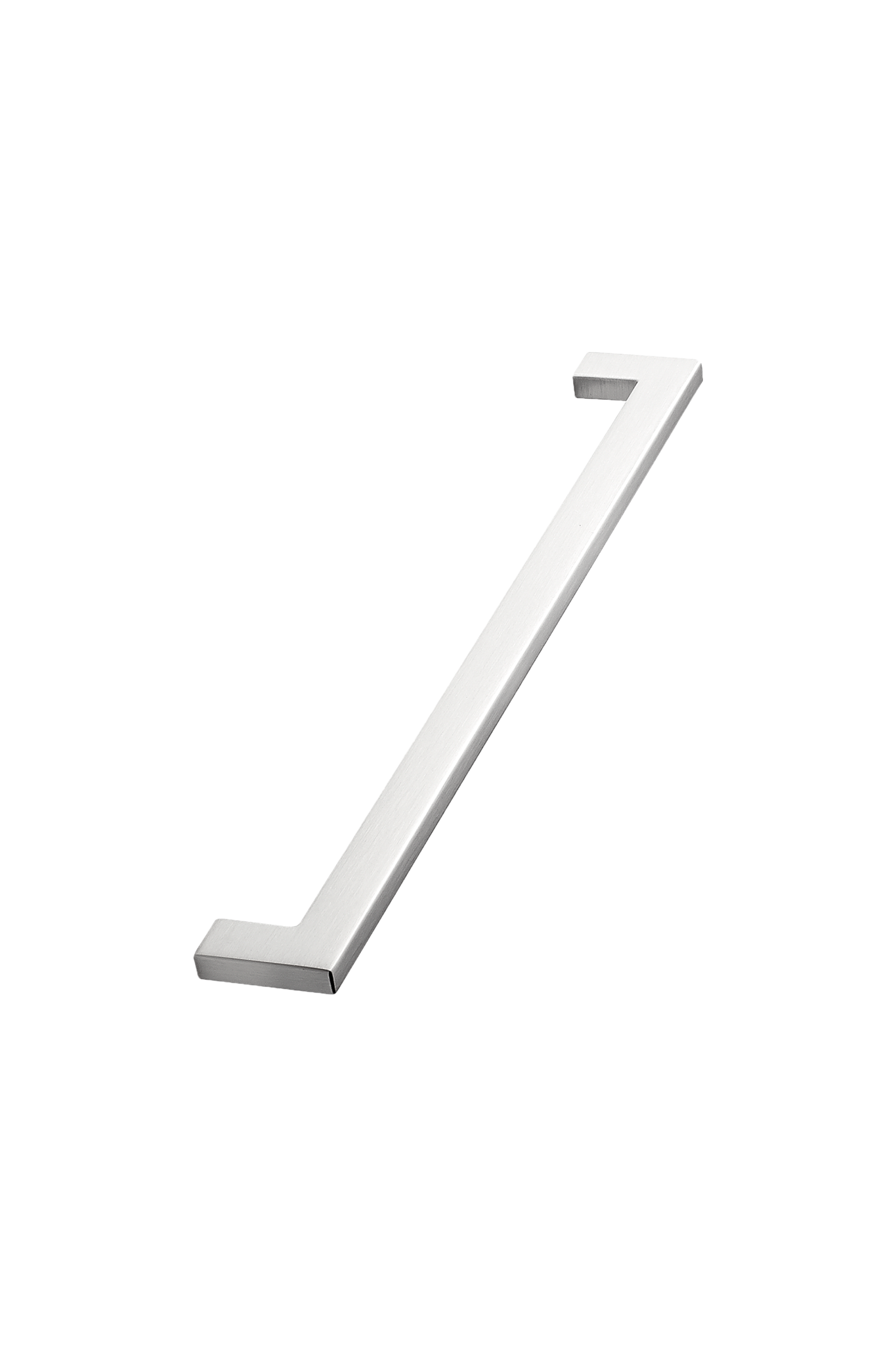 Poignées de meubles élégantes et contemporaines de Furnipart, fabriquées en zamak et finies avec un revêtement résistant aspect acier inoxydable