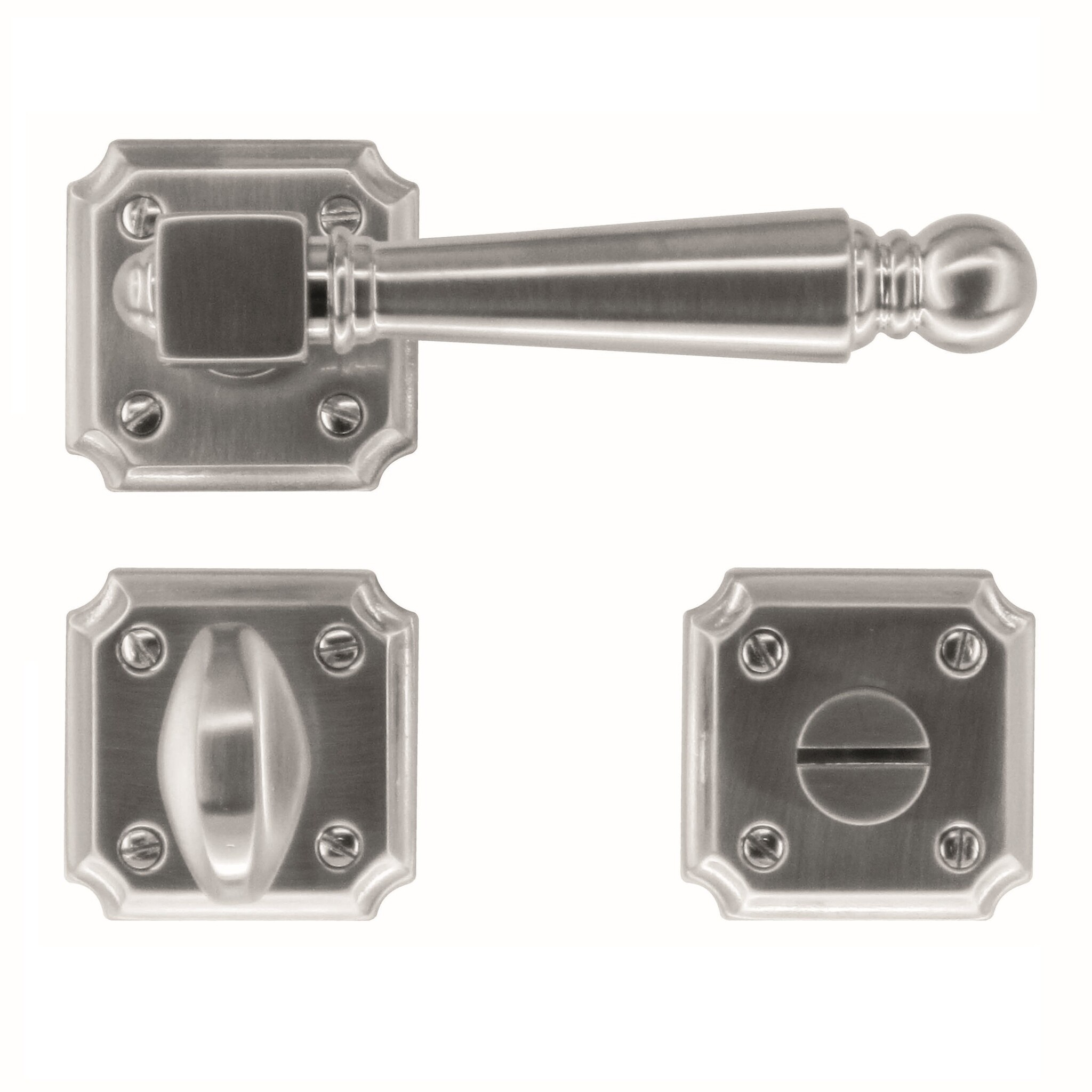 Ces poignées de porte sont disponibles en quatre versions : sans rosace, avec rosace, avec rosace cylindrique et avec garniture WC. Faites votre choix dans le menu déroulant en haut à droite .