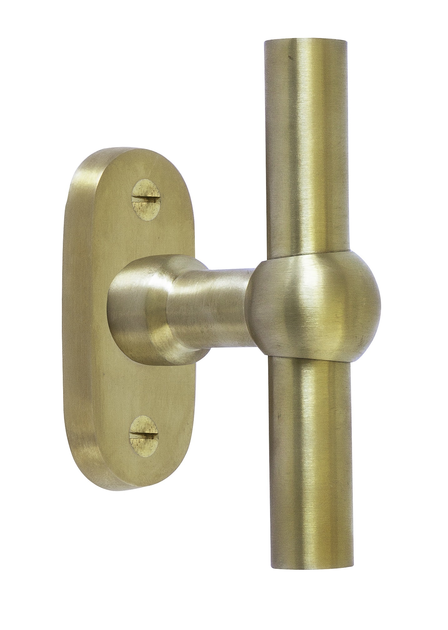 Ces poignées de porte en forme de T à nœud sphérique de la collection CDL (Créations de Laiton) de Dauby reposent sur une rosace ovale de 68 mm de hauteur et 6 mm d'épaisseur. Les trous de vis sont déjà prévus dans la rosace et sont situés à un entraxe de 43 mm.