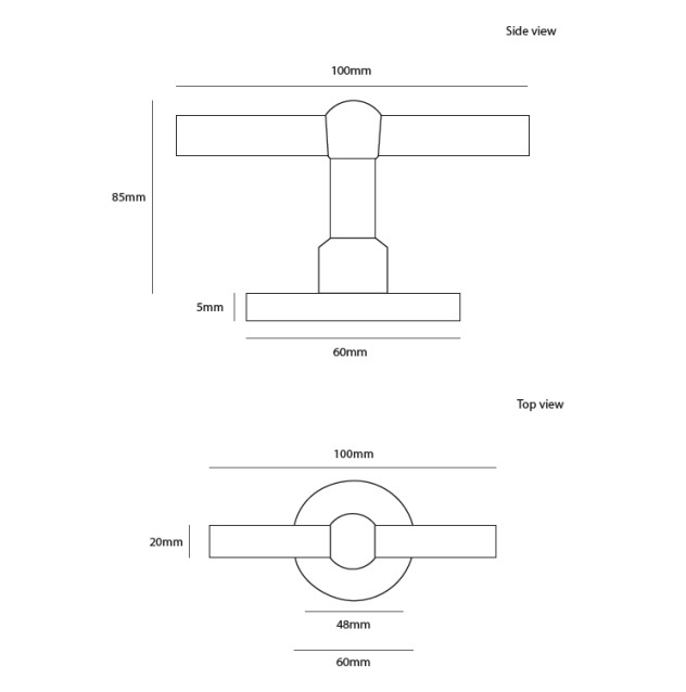 Ces poignées de porte T+T pour extérieur à noeud sphérique de la collection CDL (Créations de Laiton) de Dauby sont montées sur une rosace ronde de Ø 60 mm et d'épaisseur 5 mm. Les trous de vis dans la rosace sont déjà pourvus d'un entraxe de 48 mm