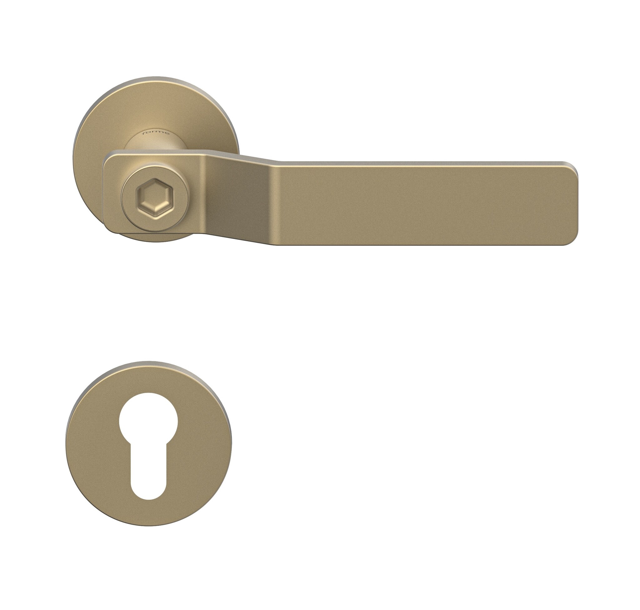 Les poignées de porte arborent le logo de Forme, une entreprise familiale italienne forte de plus de 70 ans d'expérience dans le secteur des poignées de porte.