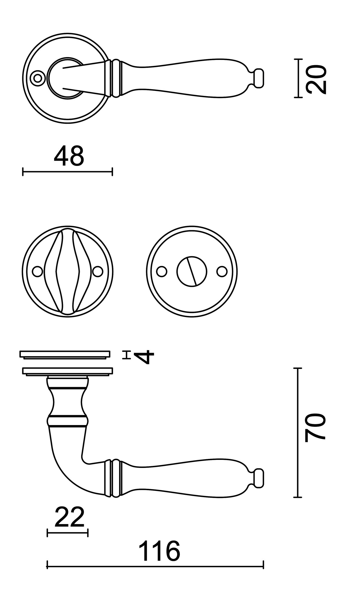 Ces poignées de porte sont disponibles en 4 variantes : sans plaques à clés, avec plaques à clés, avec plaques à cylindre et avec ferrures pour toilettes. Faites votre choix dans le menu déroulant en haut à droite .