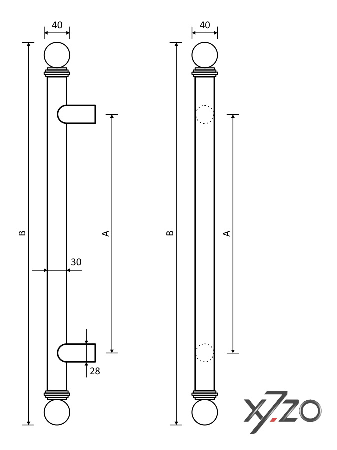La poignée de porte en acier inoxydable brillant est disponible en 3 longueurs différentes (500 mm, 800 mm & 1000 mm) que vous pouvez choisir dans le menu déroulant en haut à droite.