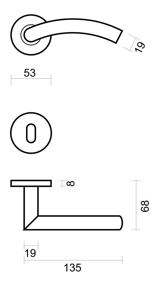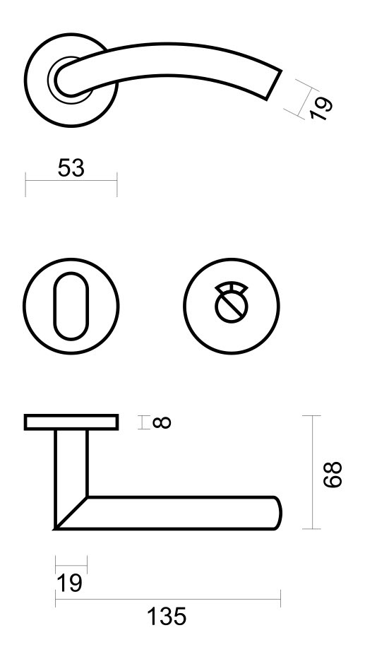 Ces poignées de porte sont disponibles en quatre versions : sans rosace, avec rosace, avec rosace cylindrique et avec garniture WC. Faites votre choix dans le menu déroulant en haut à droite .