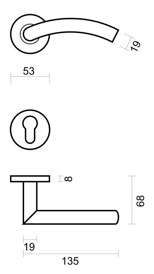 Les poignées de porte en acier inoxydable forme GI 19 mm ont une poignée courbée de 19 mm d'épaisseur.