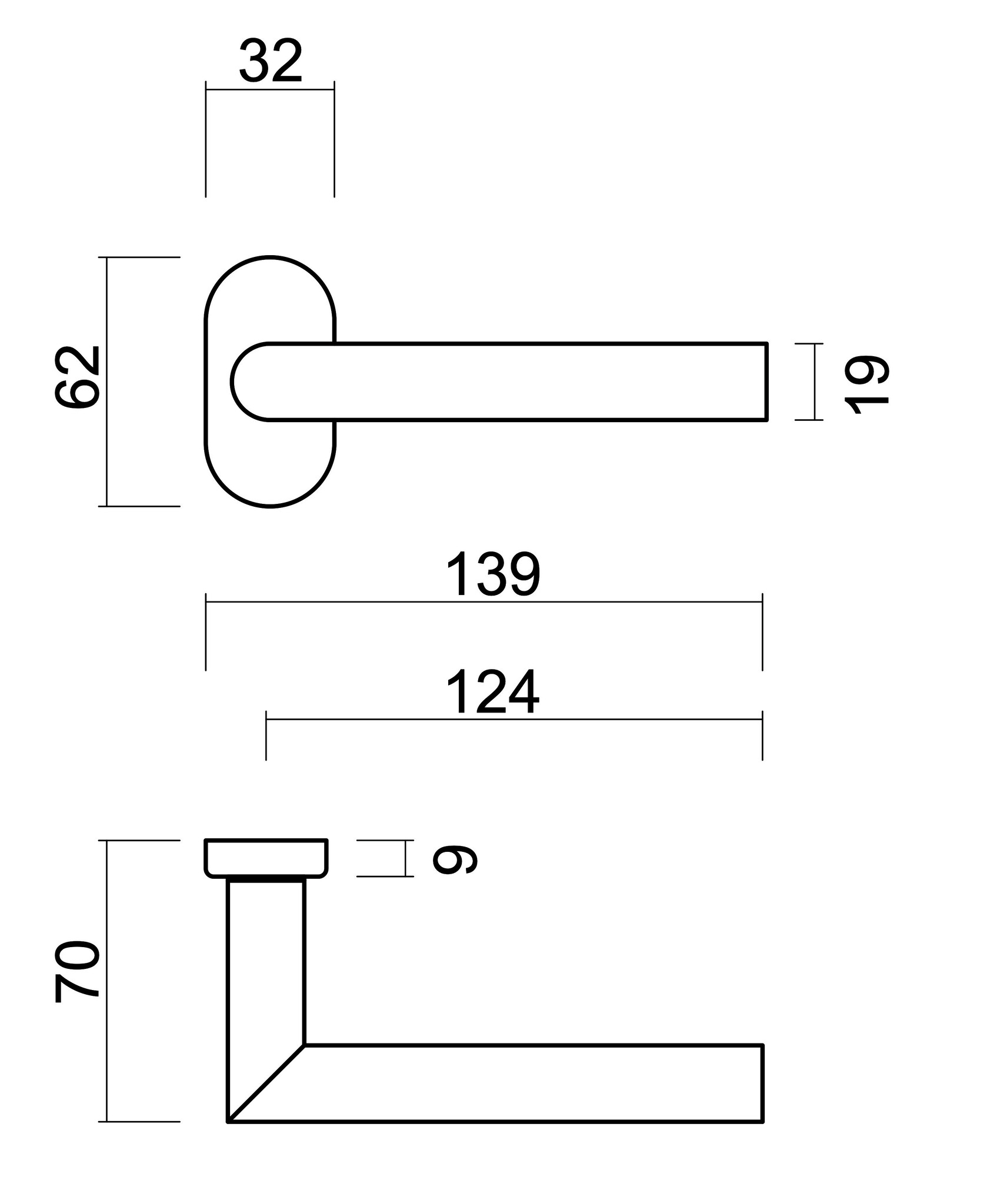 Poignée de porte à goupille 8x8 mm