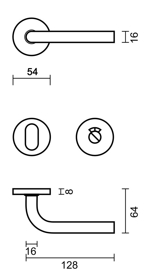 Ces poignées de porte sont disponibles en quatre versions : sans rosace, avec rosace, avec rosace cylindrique et avec garniture WC. Faites votre choix dans le menu déroulant en haut à droite .