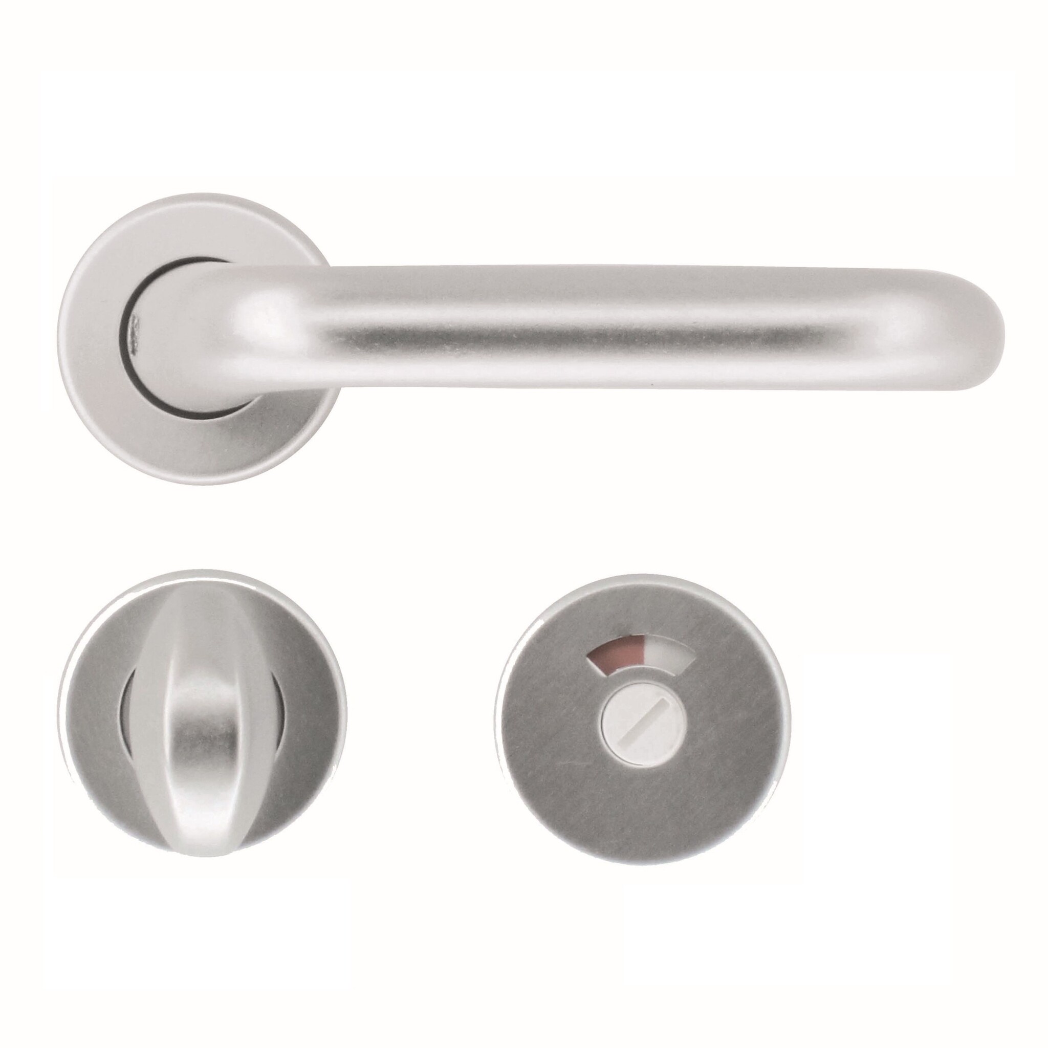 Ces poignées de porte sont disponibles en 4 variantes : sans plaques à clés, avec plaques à clés, avec plaques à cylindre et avec ferrures pour toilettes. Faites votre choix dans le menu déroulant en haut à droite .