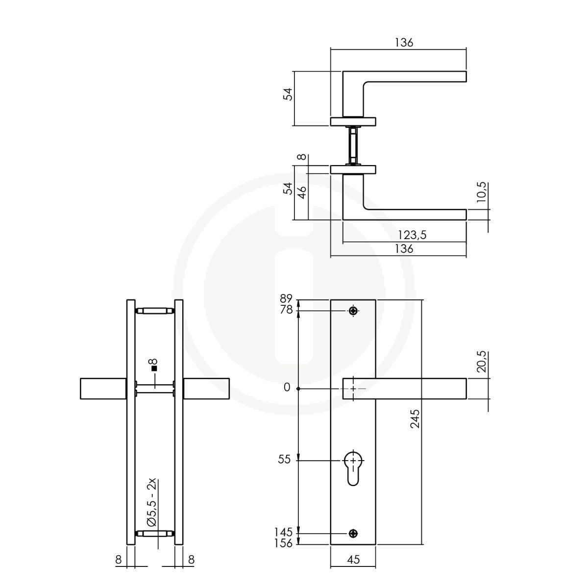 Ces poignées de porte en laiton et titane conviennent à une épaisseur de porte de 38 à 42 mm. Ils sont fournis par paire comprenant le matériel de montage nécessaire et une broche carrée de 8x8 mm. Les trous de vis dans le blindage sont déjà prévus.