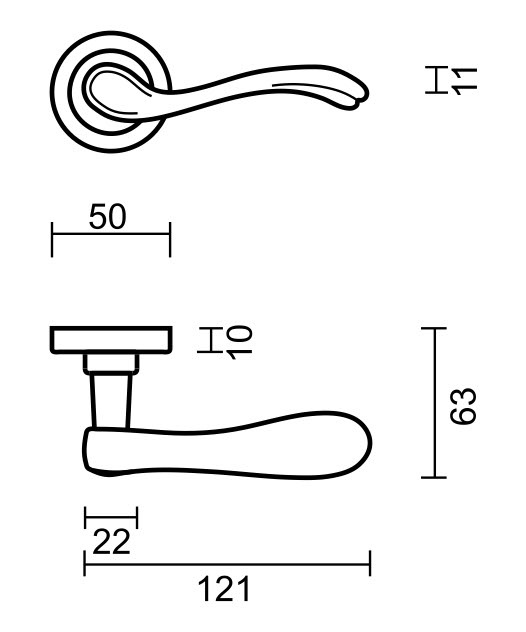 Les rosaces de ces poignées de porte à ressort ont un diamètre de 50 mm.