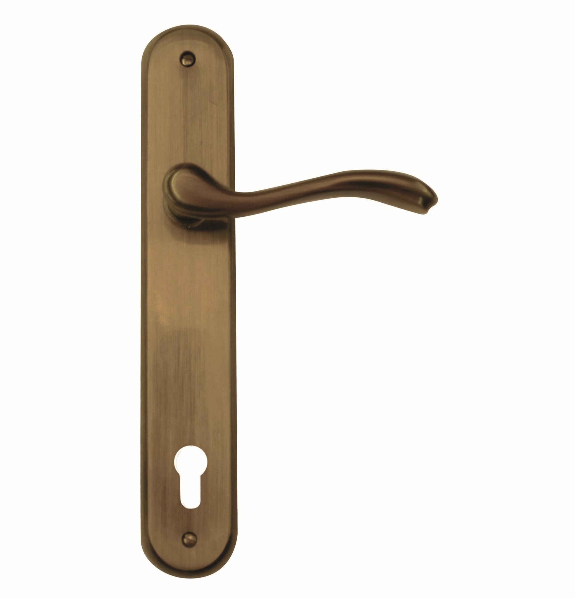 Les poignées de porte en bronze Erica arborent un aspect marron et une forme intemporelle. Elles sont livrées sur plaque, par paire, avec ou sans clé.
