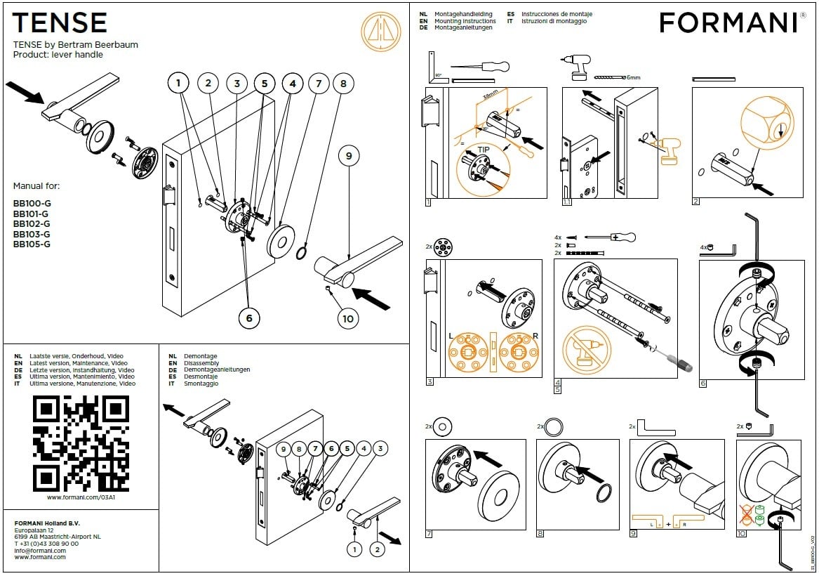 Poignées de porte Formani TENSE BB103-G - Acier inoxydable mat