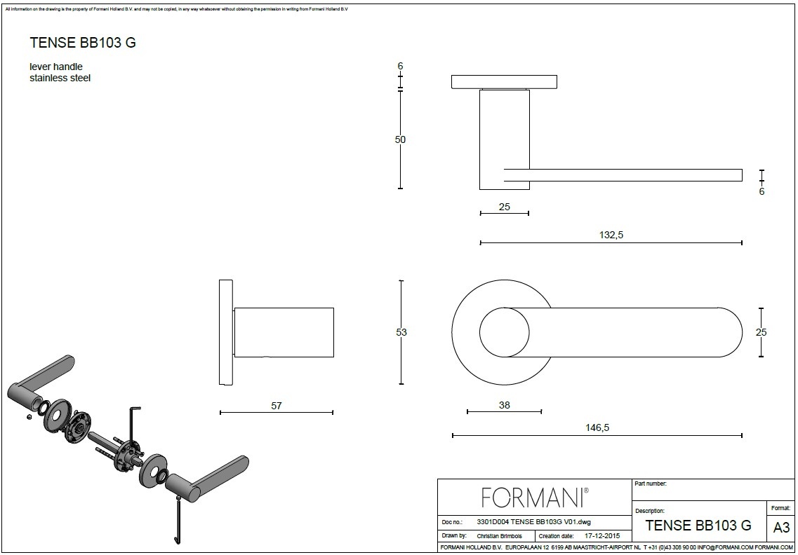 La Formani BB103-G est une poignée de porte moderne de la collection TENSE , conçue par Bertram Beerbaum.