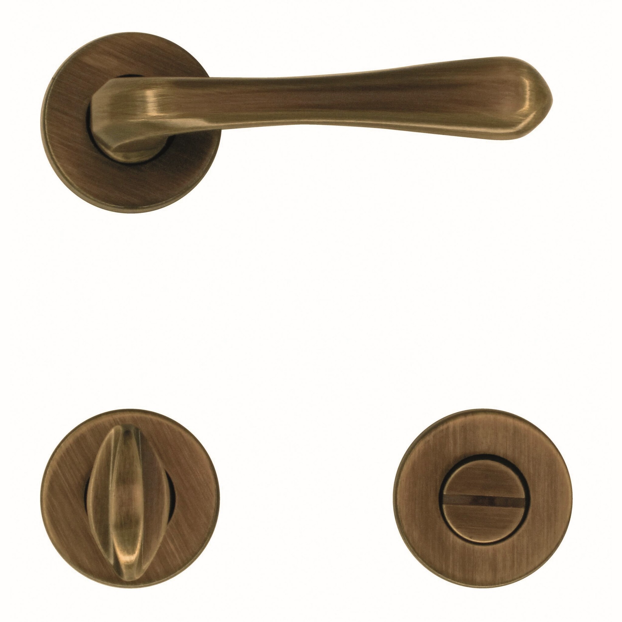 Poignée de porte Greta en bronze sur rosace ronde disponible en 4 variantes