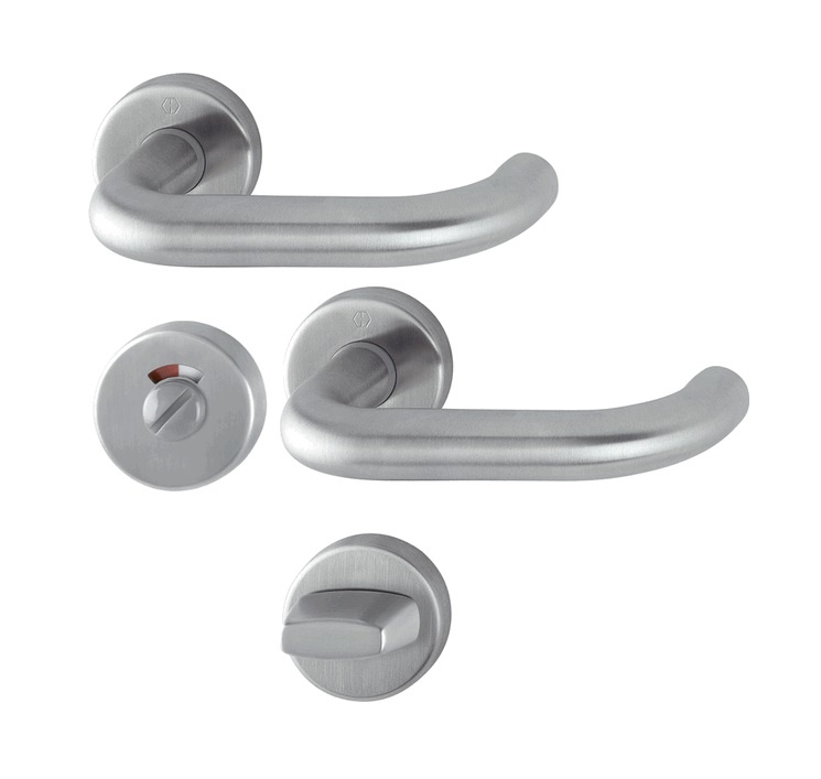Ces poignées de porte en acier inoxydable sont fournies par paire, y compris les raccords de WC assortis avec indicateur rouge-blanc et matériel de montage, manuel et gabarit de perçage.