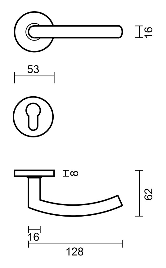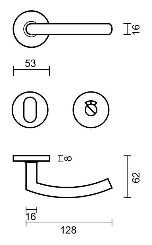 Ces poignées de porte sont disponibles en quatre versions : sans rosace, avec rosace, avec rosace cylindrique et avec garniture WC. Faites votre choix dans le menu déroulant en haut à droite .
