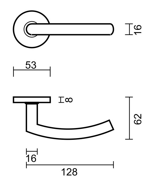 Poignées de porte en acier inoxydable "Wals" 16 mm