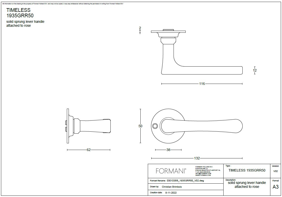 La Formani 1935GRR50 est une poignée de porte raffinée de la collection Timeless , où le design classique et la perfection moderne se rencontrent.